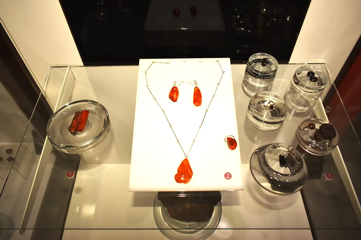 The museum is unique in Romania due to the diversity and scale of its amber collection. It includes raw amber nuggets of various sizes, as well as handcrafted jewelry such as rings, earrings, pendants, necklaces, brooches, and beads. It also preserves traditional tools used for extraction and processing, including wooden lathes, hammers, pickaxes, and oil lamps.